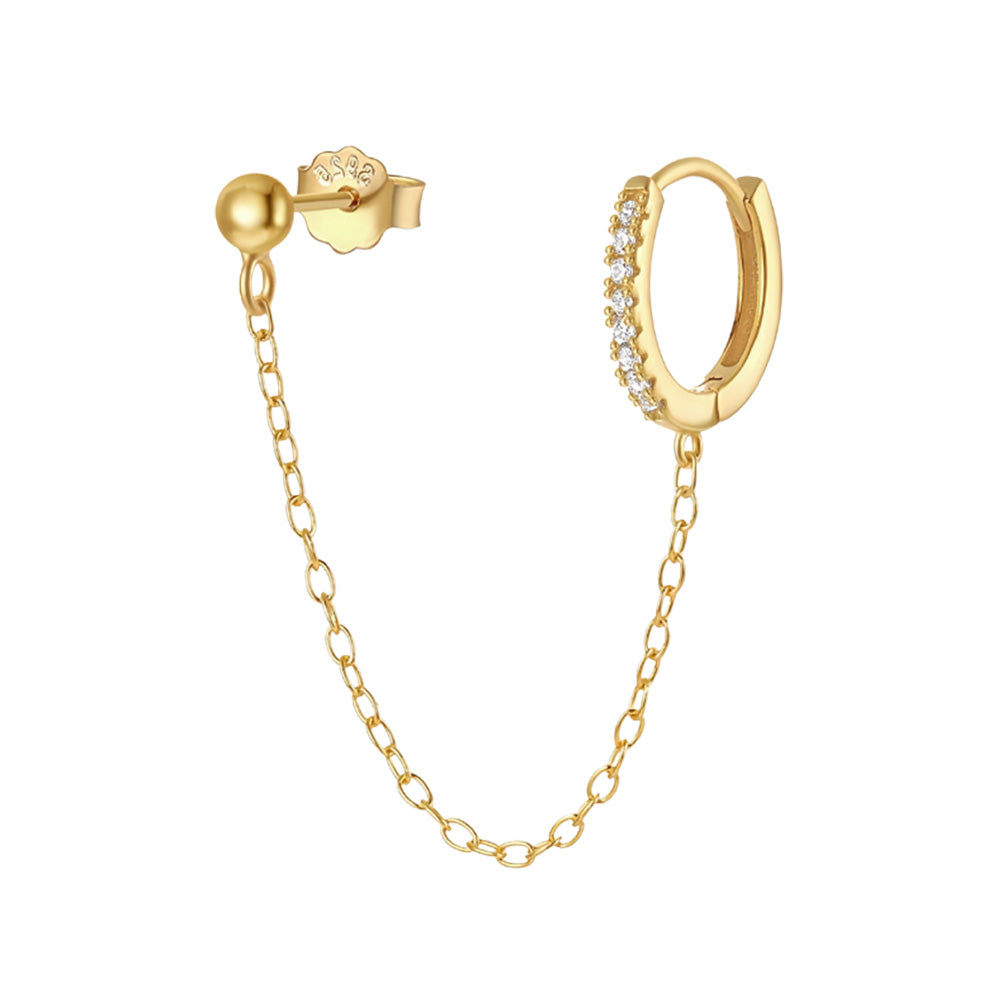 - Two earrings connected by a chain (both earrings to be worn on the same ear, cannot be disconnected)