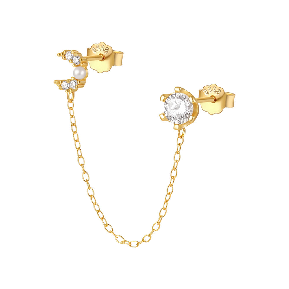 - Two earrings connected by a chain (both earrings to be worn on the same ear, cannot be disconnected)
